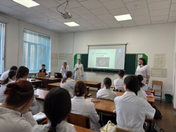 The third-year students used visual presentations to talk about the etiology, pathogenesis and prevention of...