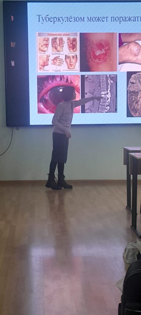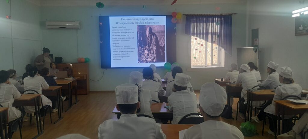 В нашем колледже было проведено профилактическое мероприятие, направленное на повышение осведомлённости студентов о таком социально значимом заболевании, как туберкулёз. Гостями мероприятия стали специалисты КГП на ПХВ «ОЦФ» УЗКО участковый врач фтизиатр Кенжебаева Сауле Аймановна и старшая медсестра Кретинина Елена Сергеевна.
